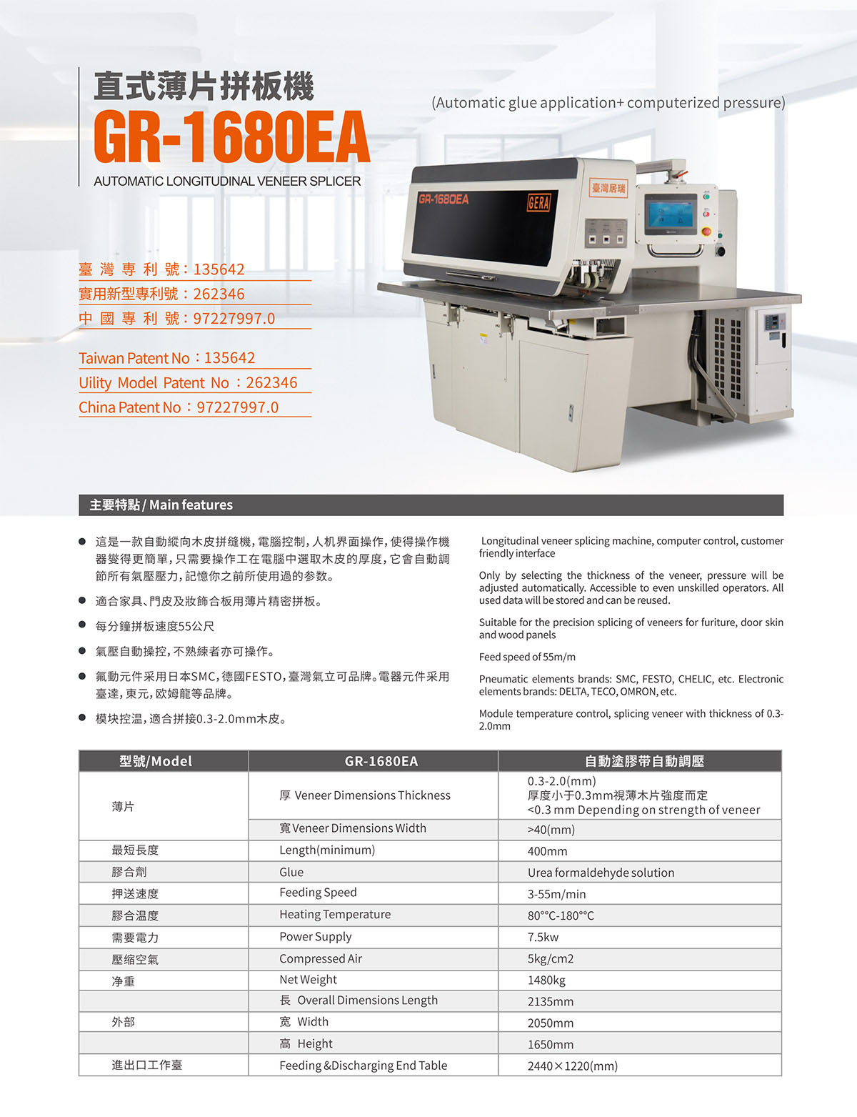 直式薄片拼板机GR-1680EA